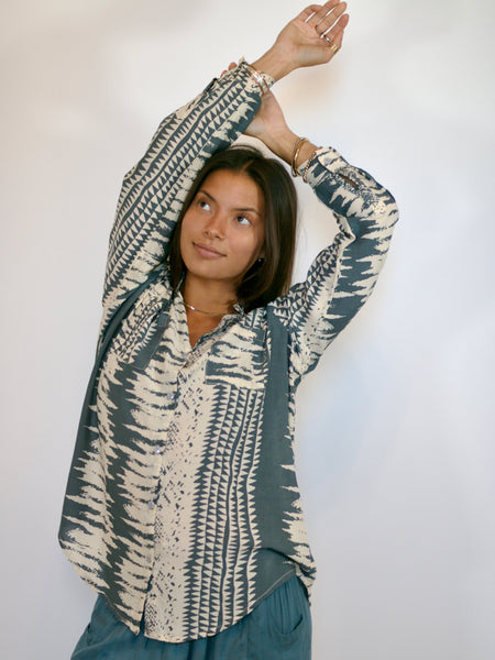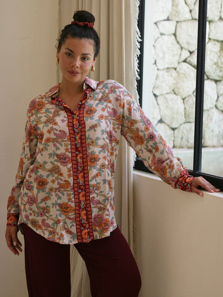 A timeless classic with a statement twist. The Ava Button Down features a gorgeous all-over print on a lightweight, silk-like fabric that drapes beautifully. Effortlessly versatile, it’s perfect for your next event, vacation, or an elevated everyday look.