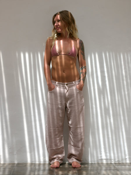 We've reconstructed the barrel jean—softer, comfier, finished in a textured cotton blend that feels worn-in from the start. Easy shape and effortless styling. Pair it with a fitted tank, an oversized button-down, or your favorite knit.